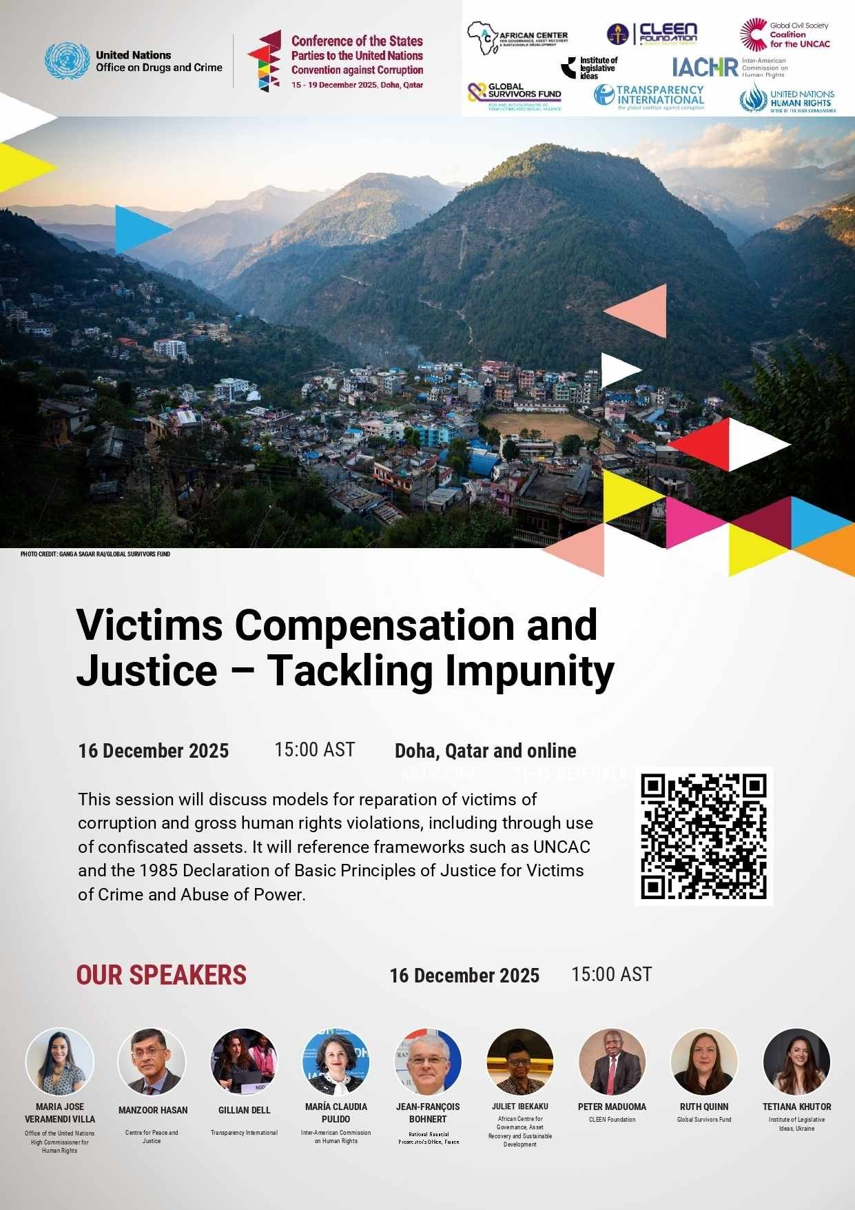 Building on UNCAC obligations and the Basic Principles on the Right to a Remedy and Reparation for Victims of Gross Violations of International Human Rights Law and Serious Violations of International Humanitarian Law, discussions will explore global best practices for reparative justice, legal frameworks, and institutional mechanisms that ensure victims of corruption are meaningfully compensated and that impunity is addressed.